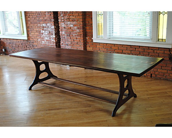12 person sculpted walnut dining table. This table top is 120"x40"x2" thick and is made of only 2 book-matched pieces